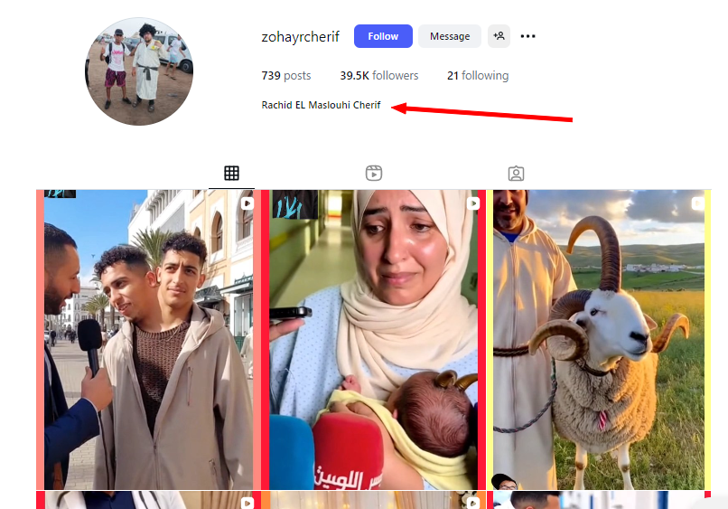সেই ইনষ্টাগ্ৰাম হেণ্ডেলটোত আমি ব্যৱহাৰকাৰীগৰাকীৰ নাম Rachid EL Maslouhi Cherif বুলি লিখা দেখিলোঁ।