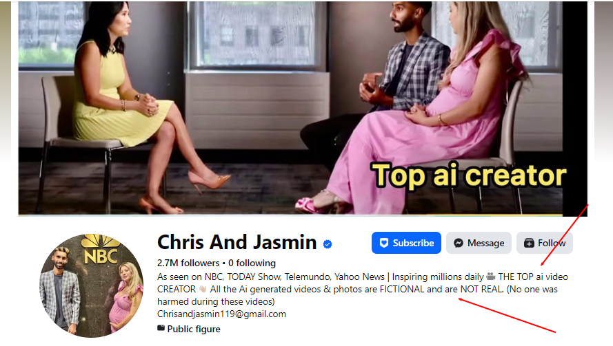 আমি সেই ইনষ্টাগ্ৰাম হেণ্ডেলটো পৰীক্ষা কৰি দেখিলোঁ যে সেইটো কৃত্ৰিম বুদ্ধিমত্তাৰে আমোদজনক ভিডিঅ’ সৃ্ষ্টি কৰা এক দম্পতীৰ হেণ্ডেল। ক্ৰিছ আৰু জেছমিন নামৰ এক দম্পতীয়ে সেই ভিডিঅ’সমুহ সৃষ্টি কৰা বুলি জানিব পাৰিলোঁ। হেণ্ডেলটোত আমি লাভ কৰা লিংকত তেওঁলোকৰ ফেচবুক পেজ, থ্ৰেড হেণ্ডেল আৰু ৱেবছাইটটোৰ সন্ধান লাভ কৰিলোঁ।