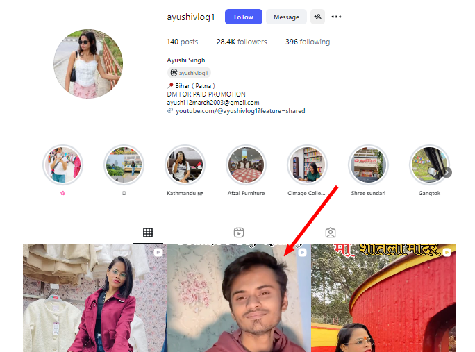 ইয়াৰে আঁত ধৰি আমি প্ৰথমে আয়ুসী সিঙৰ ইনষ্টাগ্ৰাম হেণ্ডেলটো বিচাৰি উলিয়ালোঁ আৰু জানিব পাৰিলোঁ যে তেওঁ বিহাৰৰ পাটনাৰ এগৰাকী ভ্লগাৰ। আমি তেওঁৰ ইনষ্টাগ্ৰামত তেওঁৰ বন্ধু তৰুণৰ সৈতে তেওঁ প্ৰস্তুত কৰা এটা স্পষ্টীকৰণ ভিডিঅ’ পালোঁ।