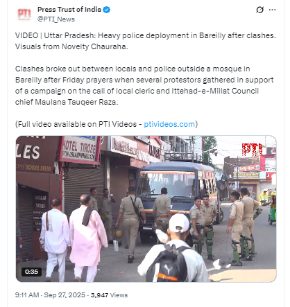 উত্তৰ প্ৰদেশৰ বৰেইলীৰ এই সংঘৰ্ষৰ সম্পৰ্কত প্ৰেছ ট্ৰাষ্ট অৱ ইণ্ডিয়াৰ এটা বাতৰি আমি এক্সত লাভ কৰিলোঁ।