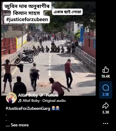 এই পৰিপ্ৰেক্ষিততে উক্ত দিনটোত ফেচবুকত এটা বিশেষ ভিডিঅ’ ভাইৰেল হৈ পৰে। ভিডিঅ’টোত দেখা গৈছে একাংশ যুৱকে কৰ্তব্যৰত নিৰাপত্তা বাহিনীক লক্ষ্য কৰি শিলগুটি নিক্ষেপ কৰিছিল আৰু নিৰাপত্তৰাক্ষীৰ উদ্যত বন্দুকৰ আগত দুহাত মেলি বুকু পাতি দিছিল। সেই ভিডিঅ’ত টেক্সট ওভাৰলে’(Text Overlay) কৰি লিখা আছিল- জুবিনদাৰ অনুৰাগীৰ কিমান সাহস। এবাৰ ছাই লোৱা। তাত হেশ্বটেগ দি #justiceforzubeen লিখা হৈছে। বৰ্তমান সময়ত অসমৰ সামাজিক মাধ্যমত justiceforzubeengarg তথা justiceforzubeen হেশ্বটেগ চলি আছে। এইদৰেই সেই দৃশ্যটো বাক্সাৰ বুলি তথা সেই সকল জুবিন অনুৰাগী বুলি দাবী কৰা হৈছে।