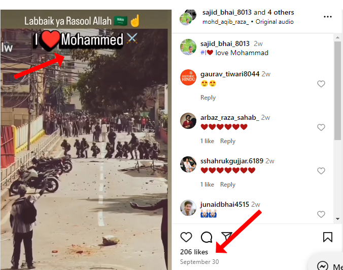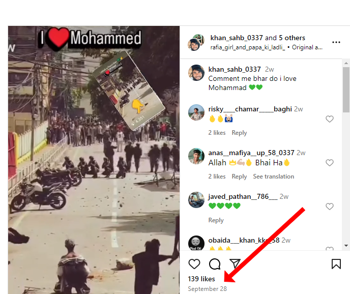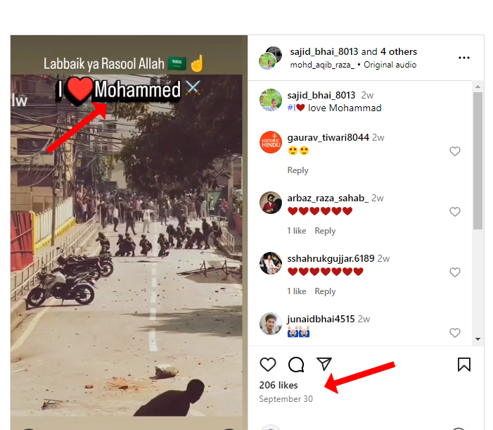 ২৮ চেপ্তেম্বৰ ২০২৫তো একেটা ভিডিঅ’ ইনষ্টাগ্ৰামত আপলোড কৰা হৈছিল আৰু তাতো I love Mohammad লিখা হৈছিল।