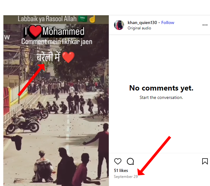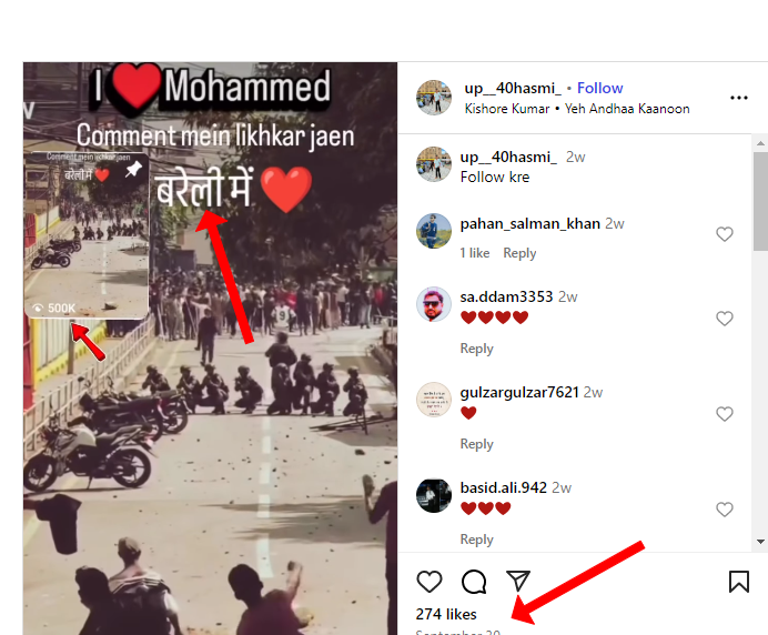 তাৰ পাছত ক্ৰমে ৩০ চেপ্তেম্বৰ ২০২৫ আৰু ২৯ চেপ্তেম্বৰ ২০২৫ ইনষ্টাগ্ৰামত দিয়া দুটা পোষ্টত সেই ভিডিঅ’টোৰ ওপৰত I love Mohammad লিখাৰ উপৰিও হিন্দী ভাষাত ‘বৰেইলী মে’ বুলি লিখা আমি দেখিলোঁ।