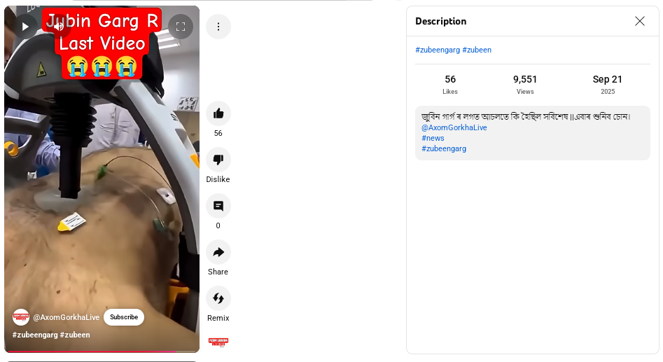 আনহাতে তলত দিয়া ধৰণে ইউটিউৱতো একেটা ভিডিঅ’ আপলোড কৰি সেয়া জুবিন গাৰ্গ বুলি দাবী কৰা হৈছে।
