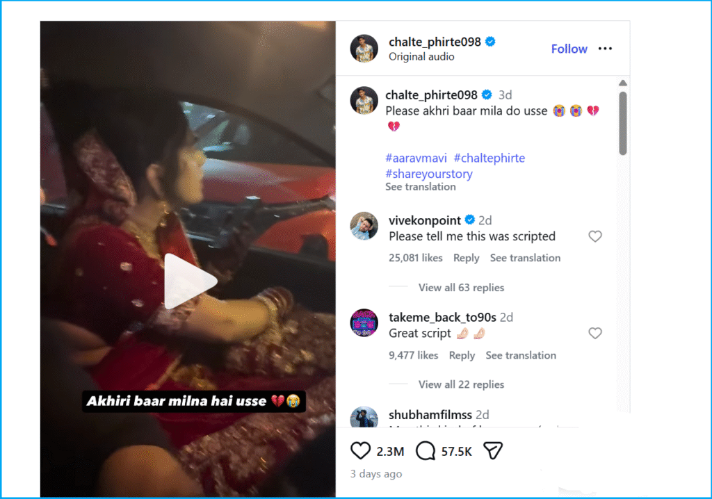 এইবাৰ আমি এই ইনষ্টাগ্ৰাম হেণ্ডলটোত ২০২৫ চনৰ ১৬ ডিচেম্বৰৰ এটা পোষ্ট পালোঁ। কেপশ্বনত লিখা আছিল এইদৰে, “এই কাহিনীটো বাস্তৱিক পৰিঘটনাৰ পৰা অনুপ্ৰাণিত। ই কেৱল সজাগতাৰ বাবে আৰু হৃদয় স্পৰ্শ কৰিবলৈ”। ভিডিঅ’টোত “আৰৱ মাহী”য়ে কয়, “আপোনালোকে হয়তো মই সৃষ্টি কৰা এটা ভিডিঅ’ দেখিছে য’ত কইনা এগৰাকী পলাই যোৱা দেখা গৈছে। মই ভবা নাছিলোঁ যে সেইটো ইমান ভাইৰেল হৈ পৰিব।…মোক বহুতো নামজ্বলা সংবাদ মাধ্যমৰ পৰা ফোন আহিছে এই ভিডিঅ’টো সম্পৰ্কে জানিবলৈ।…মোৰ ফল’ৱাৰসকলে জানে যে মই প্ৰায়ে বিভিন্নজনে মোৰ সৈতে শ্বেয়াৰ কৰা সত্য ঘটনাৰ পৰা অনুপ্ৰাণিত হৈ ভিডিঅ’ নিৰ্মাণ কৰোঁ। এই ভিডিঅ’টোও তেনেদৰেই নিৰ্মাণ কৰা হৈছিল।…”