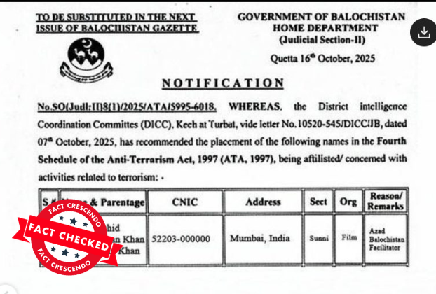 পাকিস্তানে অভিনেতা ছলমান খানক সন্ত্ৰাসবাদী বুলি ঘোষণা কৰিছে নেকি? পঢ়ক আমাৰ এই ফেক্ট চেক।