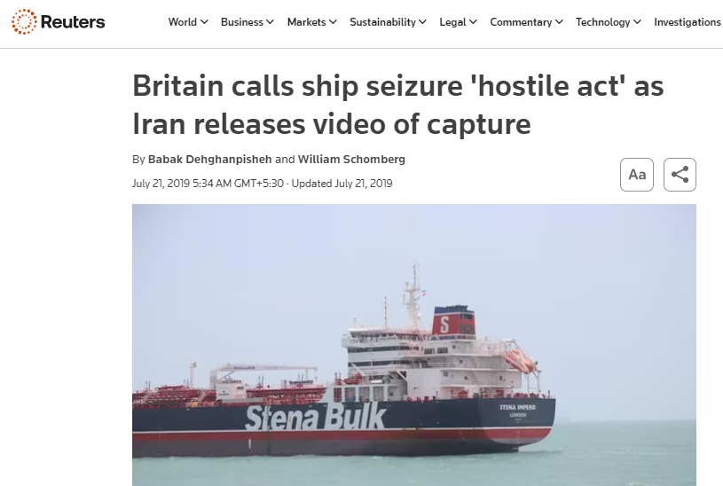 এইবাৰ আমি Al Jazeera English ৰ ইউটিউৱ চেনেলত Iran seizes British oil tanker in Strait of Hormuz শীৰ্ষক এটা বাতৰি পালোঁ। বাতৰিৰ বিৱৰণ মতে- উপসাগৰীয় অঞ্চলত ক্ৰমাৎ উত্তেজনা বৃদ্ধি পোৱাৰ মাজতে ইৰাণৰ ৰিভল্যুচনেৰী গাৰ্ড কৰ্পছে কয় যে তেওঁলোকৰ বাহিনীয়ে হৰমুজ প্ৰণালীত এখন ব্ৰিটিছ তেল টেংকাৰ বন্দী কৰিছে। আই আৰ জি চিৰ অফিচিয়েল ৱেবছাইট চেপাহনিউজে ঘোষণা কৰিছে যে ষ্টেনা ইম্পেৰো টেংকাৰখন “হৰমুজ প্ৰণালীৰ মাজেৰে পাৰ হৈ যোৱাৰ সময়ত হৰমুজগান বন্দৰ আৰু সামুদ্ৰিক সংস্থাৰ অনুৰোধত ৰিভল্যুচনেৰী গাৰ্ডে জব্দ কৰিছিল, আন্তঃৰাষ্ট্ৰীয় সামুদ্ৰিক নিয়ম নমনাৰ বাবে”। ইয়াত কোৱা হৈছে টেংকাৰখনক “পাৰলৈ লৈ যোৱা হৈছিল আৰু আইনী পদ্ধতিৰ মাজেৰে যাবলৈ সংস্থাটোক গতাই দিয়া হৈছিল আৰু তদন্তৰ প্ৰয়োজন হৈছিল”। জাহাজখনৰ মালিক ষ্টেনা বাল্ক আৰু নৰ্দাৰ্ণ মেৰিন মেনেজমেণ্টে জনোৱা মতে, স্থানীয় সময় অনুসৰি সন্ধিয়া ৭:৩০ বজাত জাহাজখন জব্দ কৰে আৰু লগতে কয় যে তেওঁলোকে “বৰ্তমান জাহাজখনৰ সৈতে যোগাযোগ কৰিব পৰা নাই”। টেংকাৰ ট্ৰেকিং সেৱা মেৰিন ট্ৰেফিকে দেখুৱাইছে যে ব্ৰিটেইনৰ পতাকাযুক্ত, ছুইডেনৰ মালিকানাধীন ষ্টেনা ইম্পেৰ’ই শেষবাৰৰ বাবে স্থানীয় সময় অনুসৰি নিশা ৯ বজাত (১৬:৩০ জিএমটি) অতি স্পৰ্শকাতৰ জলপথত লাৰাক দ্বীপৰ ওচৰত নিজৰ স্থানৰ সংকেত দিছিল। কোম্পানীটোৰ বিবৃতিত লগতে কোৱা হৈছে যে জাহাজখনত ২৩ জন ক্ৰু মেম্বাৰ আছে। ব্ৰিটেইনৰ প্ৰতিৰক্ষা মন্ত্ৰালয়ৰ এগৰাকী মুখপাত্ৰই কয় যে উপসাগৰীয় অঞ্চলত কোনো ঘটনাৰ খবৰ পোৱাৰ পীছত আমি জৰুৰীভাৱে অধিক তথ্য বিচাৰিছোঁ আৰু পৰিস্থিতিৰ মূল্যায়ন কৰিছোঁ।
