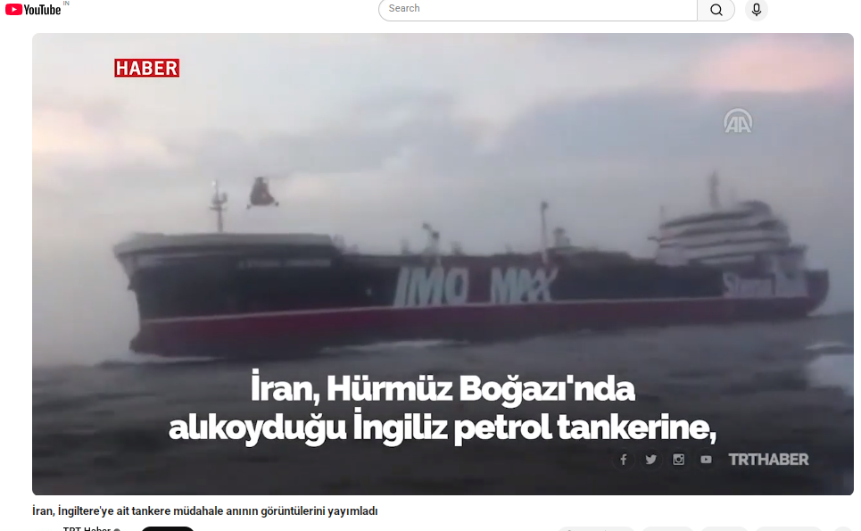 আনহাতে ২০১৯ৰ ২১ জুলাইত টুৰ্কিছ ভাষাত কেপছন লিখি একেটা ভিডিঅ’ ইউটিউৱত আপলোড কৰা আমি দেখিলোঁ। কেপছনৰ অৰ্থ হৈছে- ইৰানে ব্ৰিটিছৰ মালিকানাধীন টেংকাৰখন জব্দ কৰা মুহূৰ্তৰ ফুটেজ প্ৰকাশ কৰে।