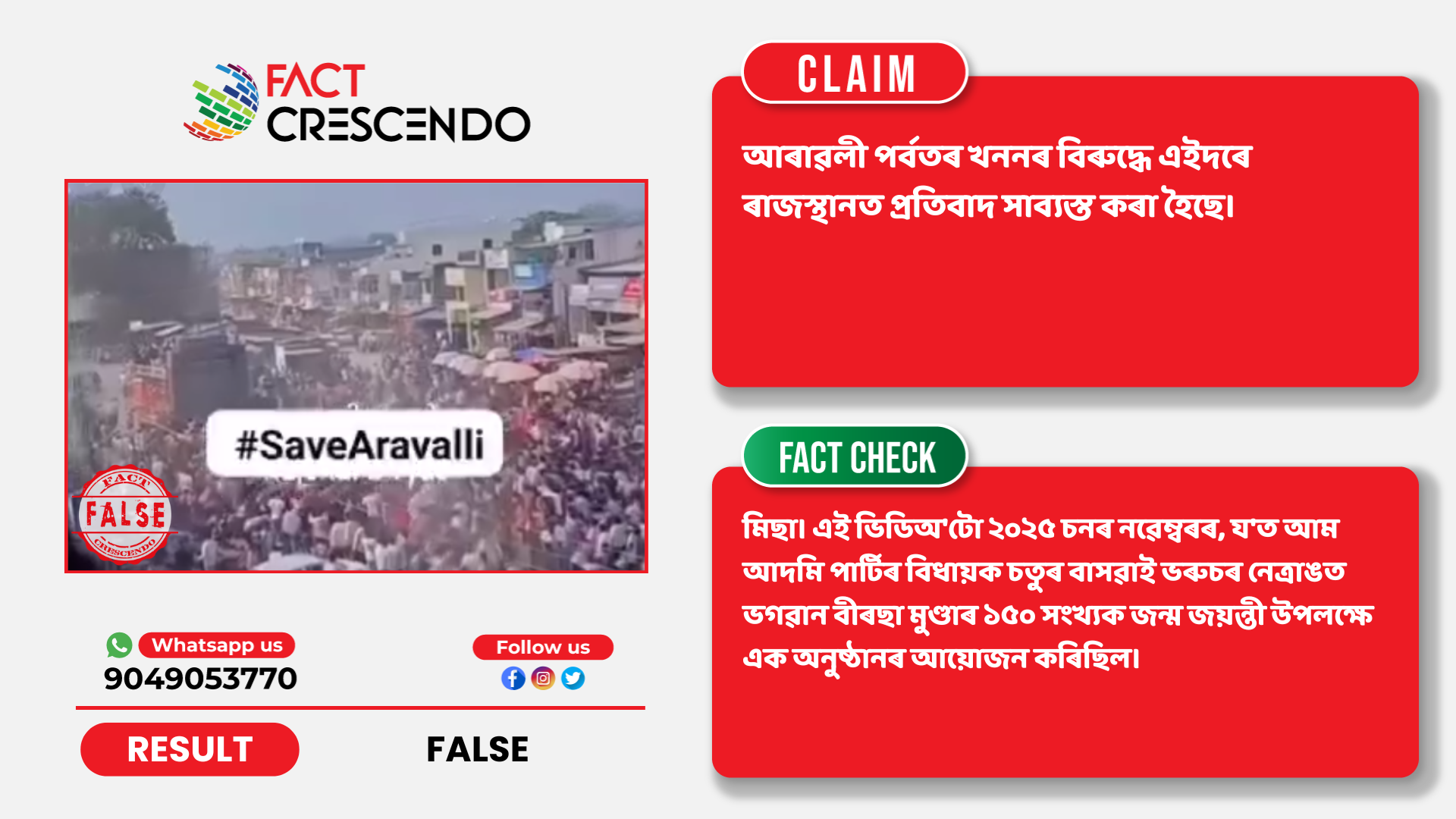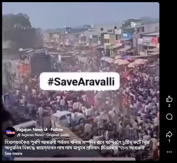 শেহতীয়াকৈ অসমৰ এটা ফেচবুক পেজত এটা বিশেষ ভিডিঅ’ আপলোড কৰি সেই দৃশ্যটো আৰাৱলী পৰ্বতৰ খননৰ বিৰুদ্ধে ৰাজস্থানত হোৱা প্ৰতিবাদৰ বুলি দাবী কৰিছে।