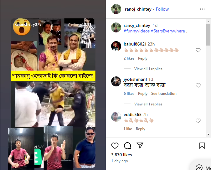একেগৰাকী ব্যৱহাৰকাৰীৰ ফেচবুক একাউণ্টত আমি সেই ভিডিঅ’টোৰ পূৰ্ণ সংস্কৰণটো পালোঁ। যিটো ভিডিঅ’ শ্যামকানু মহন্তক প্ৰহাৰ কৰি থকা বুলি দাবী কৰি ভাইৰেল কৰা হৈছে, সেইটো ভিডিঅ’ বিস্তাৰিত ৰূপত এই ব্যৱহাৰকাৰীগৰাকীৰ পোষ্টত আমি দেখিলোঁ।