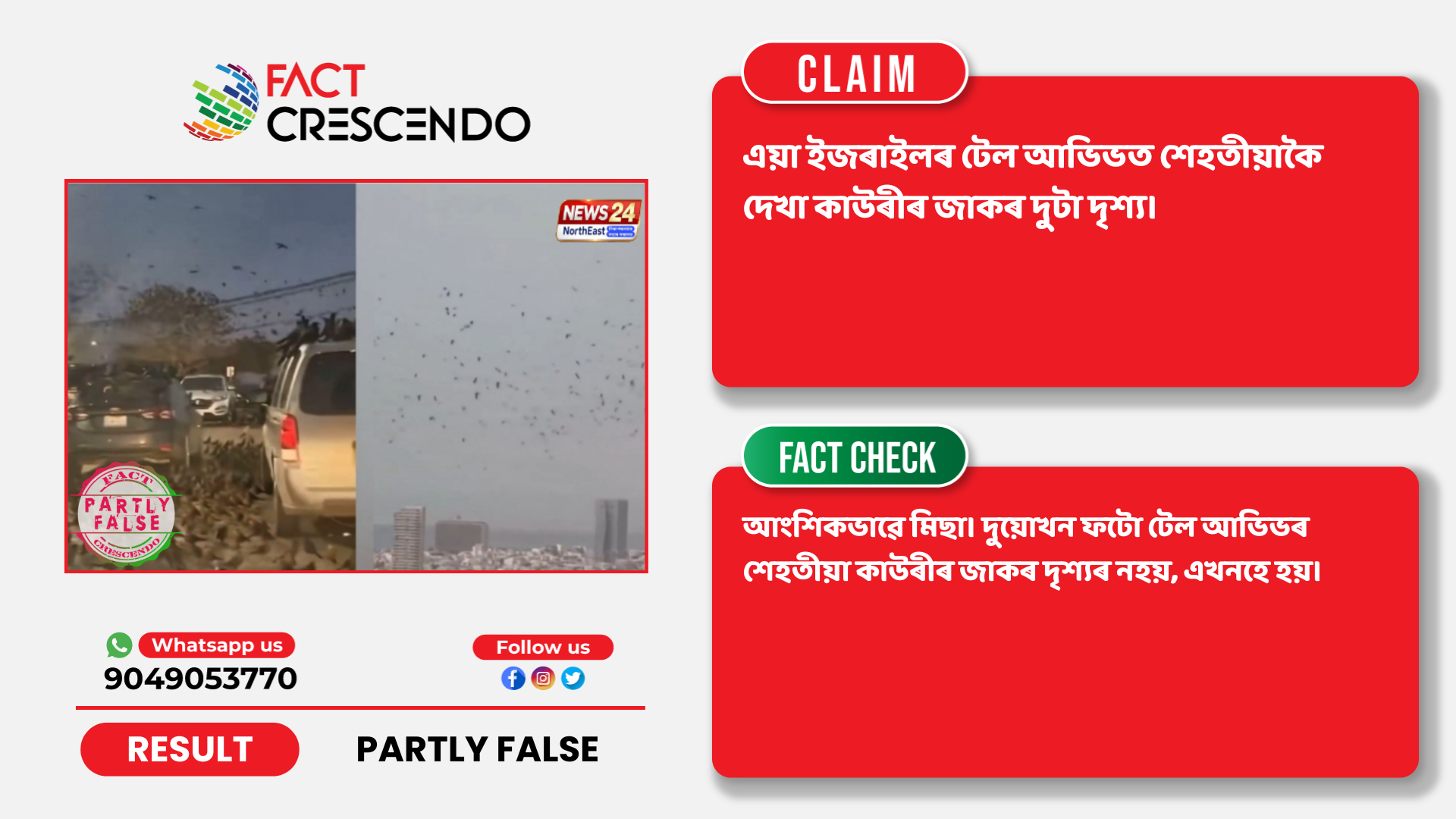 টেল আভিভৰ আকাশত কাউৰীৰ জাকৰ এই দাবীটো আংশিকভাৱে মিছা।