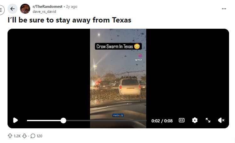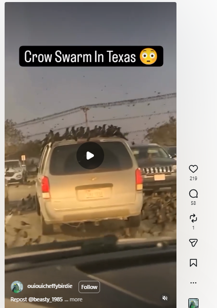 ইয়াৰ পাছত আমি একেই ২০২৪ৰ জুনত এই ভিডিঅ’টো ইনষ্টাগ্ৰামত আপলোড কৰি থোৱা দেখিলোঁ। তাত লিখিছিল- Crows swarm in Texas.