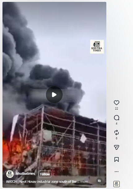 তদুপৰি khutbatimesৰ ইনষ্টাগ্ৰাম একাউণ্টতো এয়া নিওত হোভাভত থকা ঔদ্যোগিক অঞ্চলত হোৱা অগ্নিকাণ্ডৰ দৃশ্য বুলি কোৱা হৈছে।