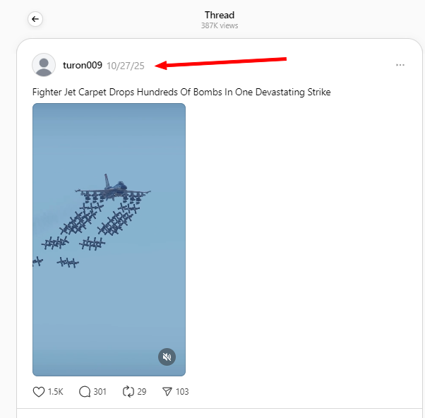 অনুসন্ধানৰ আৰম্ভণিতে আমি সেই ভিডিঅ’টোৰ প্ৰথম ক্লিপটো কীঃফ্ৰেমত ভাগ কৰি লৈ ৰিভাৰ্ছ ইমেজ ছাৰ্চ কৰিলোঁ। তেতিয়া আমি থ্ৰেডছত সেই ক্লিপটো ২০২৫ৰ অক্টোবৰ মাহৰ ২৭ তাৰিখে আপলোড কৰা দেখিলোঁ। তেতিয়াই নিশ্চিত হ’লোঁ যে দৃশ্যটো শেহতীয়া নহয়, পুৰণি।