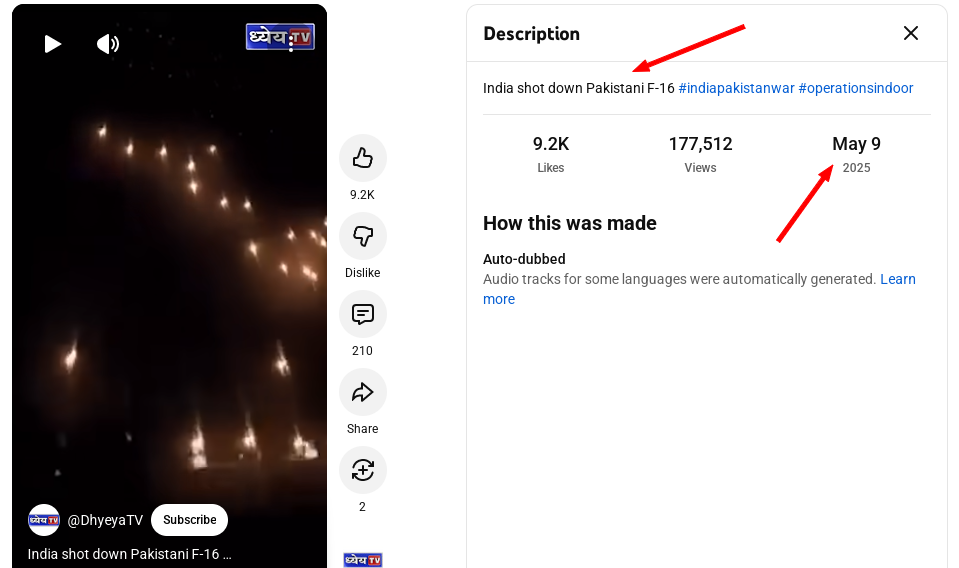 ইয়াৰ পাছত আমি সেই দৃশ্যটো যোৱা মে’ ২০২৫ৰ ভাৰত-পাকিস্তানৰ যুদ্ধৰ দৃশ্য বুলি ইউটিউৱত আপলোড কৰা দেখিলোঁ।