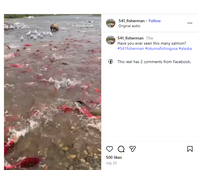 ইয়াৰ লগতে 541_fisherman নামৰ এটা ইনষ্টাগ্ৰাম হেণ্ডলতো এই ভিডিঅ’টো আপলোড কৰি থোৱা আমি দেখিলোঁ। তাত লিখা আছে Have you ever seen this many salmon? বুলি। লগতে হেশ্বটেগত #alaska বুলি লিখা আমি দেখিলোঁ।