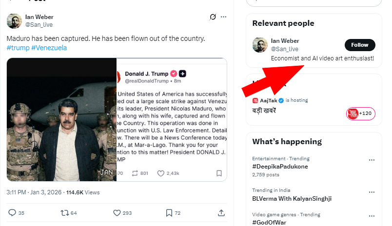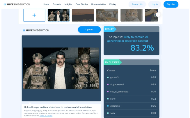 ইয়াৰ পৰাই স্পষ্ট হৈ পৰে যে যিখন ফটো নিকোলাছ মাডুৰোক বন্দী কৰাৰ পাছৰ বুলি দাবী কৰা হৈছে, সেইখন আচলতে প্ৰকৃত ফটো নহয়। সেইখন কৃত্ৰিম বুদ্ধিমত্তাৰে সৃষ্টি কৰা ফটোহে।