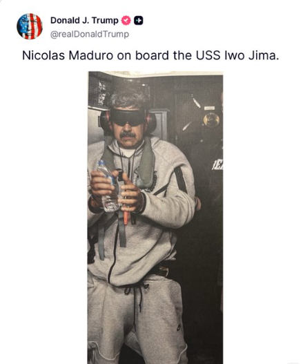 Title:ভেনিজুৱেলাৰ ৰাষ্ট্ৰপতি নিকোলাছ মাডুৰোক বন্দী কৰাৰ সময়ৰ ফটো এইখন নহয়।