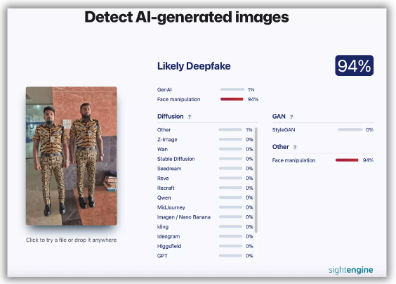 Sight Engine  মতেও এই ফটোখন ৯৪ শতাংশয়ে কৃত্ৰিম বুদ্ধিমত্তাসৃষ্ট।