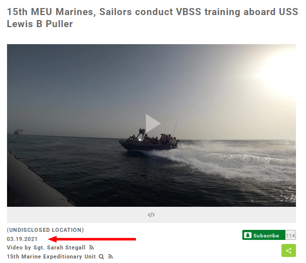 আমি ওপৰৰ ভিডিঅ’টো লেহেমীয়া কৰি জাহাজখনৰ নামটো চাবলৈ চেষ্টা কৰিলোঁ আৰু সেইখনৰ নাম লুইচ বি. পুলাৰ(Lewis B. Puller) বুলি গম পালোঁ। তাৰ ভিত্তিতেই আমি সন্ধান আগবঢ়াই জানিব পাৰিলোঁ যে মূল ভিডিঅ’টো ২০২১ চনৰ ১৯ মাৰ্চত ডিফেন্স ভিজুৱেল ইনফৰ্মেশ্যন ডিষ্ট্ৰিবিউচন চাৰ্ভিচৰ (Defense Visual Information Distribution Service) ক্লিপৰ পৰা লোৱা হৈছে। ক্লিপটোত দেখা গৈছে যে মেৰিন আৰু নাৱিকসকলে ভিজিট, ব’ৰ্ড, চাৰ্চ এণ্ড চীজাৰ (ভিবিএছএছ) (Visit, Board, Search and Seizure (VBSS) প্ৰশিক্ষণ আৰু অনুশীলন চলাই আছে, যাৰ শিৰোনাম হৈছে, “১৫সংখ্যক এমইইউ মেৰিন, নাৱিকসকলে ইউএছএছ লুইছ বি. পুলাৰত ভিবিএছএছ প্ৰশিক্ষণ চলায়।” (“15th MEU Marines, Sailors conduct VBSS training aboard USS Lewis B Puller.”)