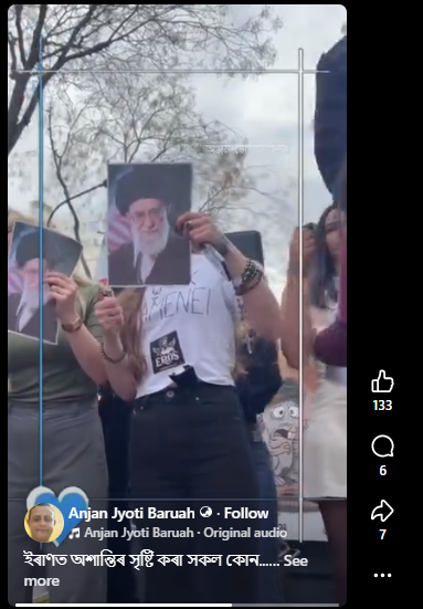 শেহতীয়াকৈ অসমৰ এগৰাকী ফেচবুক ব্যৱহাৰকাৰীয়ে এটা বিশেষ ভিডিঅ’ আপলোড কৰা দেখা গৈছে। ভিডিঅ’টোত আমি দেখোঁ যে কেইগৰাকীমান যুৱতীয়ে হিজাব খুলি পেলাইছে। তাৰ পাছতে তেওঁলোকে ইৰাণৰ শাসক খামেইনীৰ ফটোত জুই জ্বলাই দিছে। এই ভিডিঅ’টোৰে দাবী কৰা হৈছে যে ইৰাণত এইদৰে বহুকেইগৰাকী যুৱতীয়ে খামেইনী তথা শাসকীয় চৰকাৰখনৰ বিৰুদ্ধে বিদ্ৰোহ কৰিছে, প্ৰতিবাদ কৰিছে।