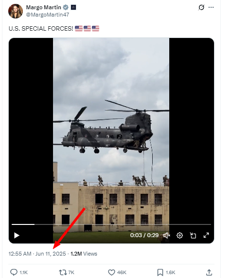 অনুসন্ধানৰ আৰম্ভণীতে আমি সেই ভিডিঅ’টোৰ স্ক্ৰীণশ্বট লৈ ৰিভাৰ্ছ ইমেজ ছাৰ্চ কৰিলোঁ। তেতিয়া সেই ভিডিঅ’টো যোৱা ১১ জানুৱাৰী ২০২৫ত এক্সত আপলোড কৰি থোৱা দেখিলোঁ। অৰ্থাত সেই দৃশ্য আমেৰিকাৰ দ্বাৰা ভেনিজুৱেলা আক্ৰমণৰ প্ৰায় এবছৰ পূৰ্বেই আপলোড কৰা বুলি নিশ্চিত হ”লোঁ। তাত লিখা হৈছিল U.S. SPECIAL FORCES!