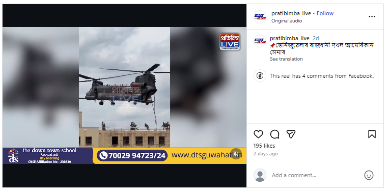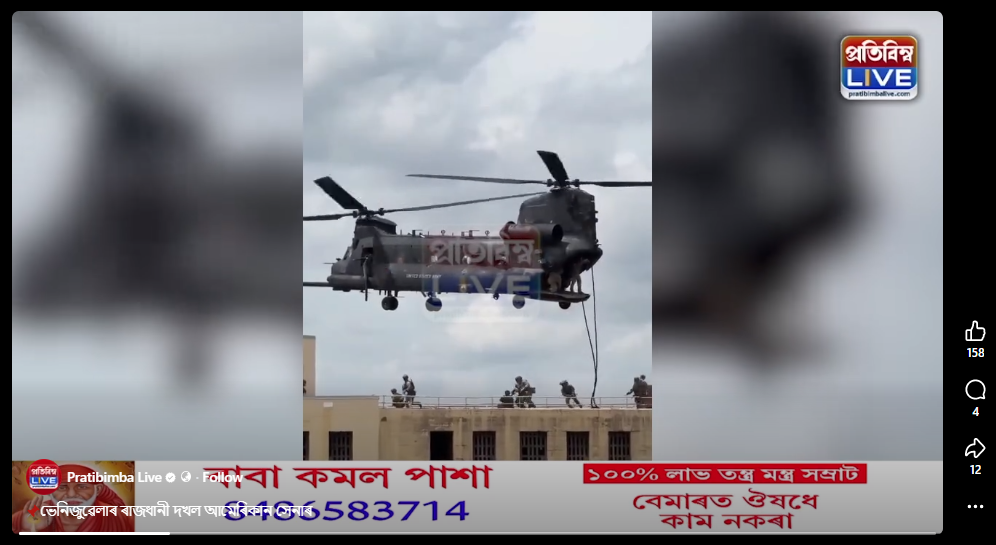 শেহতীয়াকৈ অসমৰ এটা ফেচবুক পেজত এটা ভিডিঅ’ আপলোড কৰি দাবী কৰা হৈছে যে সেয়া আমেৰিকাই শেহতীয়াভাৱে ভেনিজুৱেলাৰ ওপৰত কৰা আক্ৰমণৰ ভিডিঅ’ ।